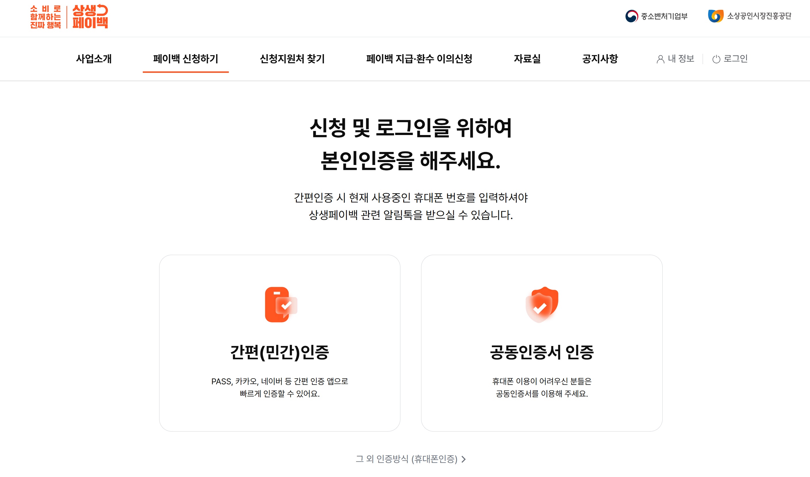 - 상생페이백 공식 사이트 접속