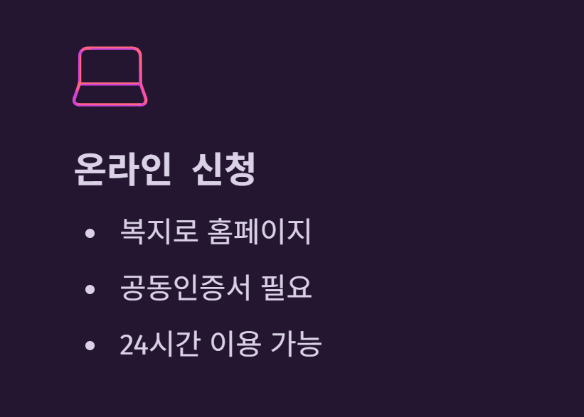 신청기간 내 24시간 이용할 수 있어 방문이 어려운 분들께 적합합니다.