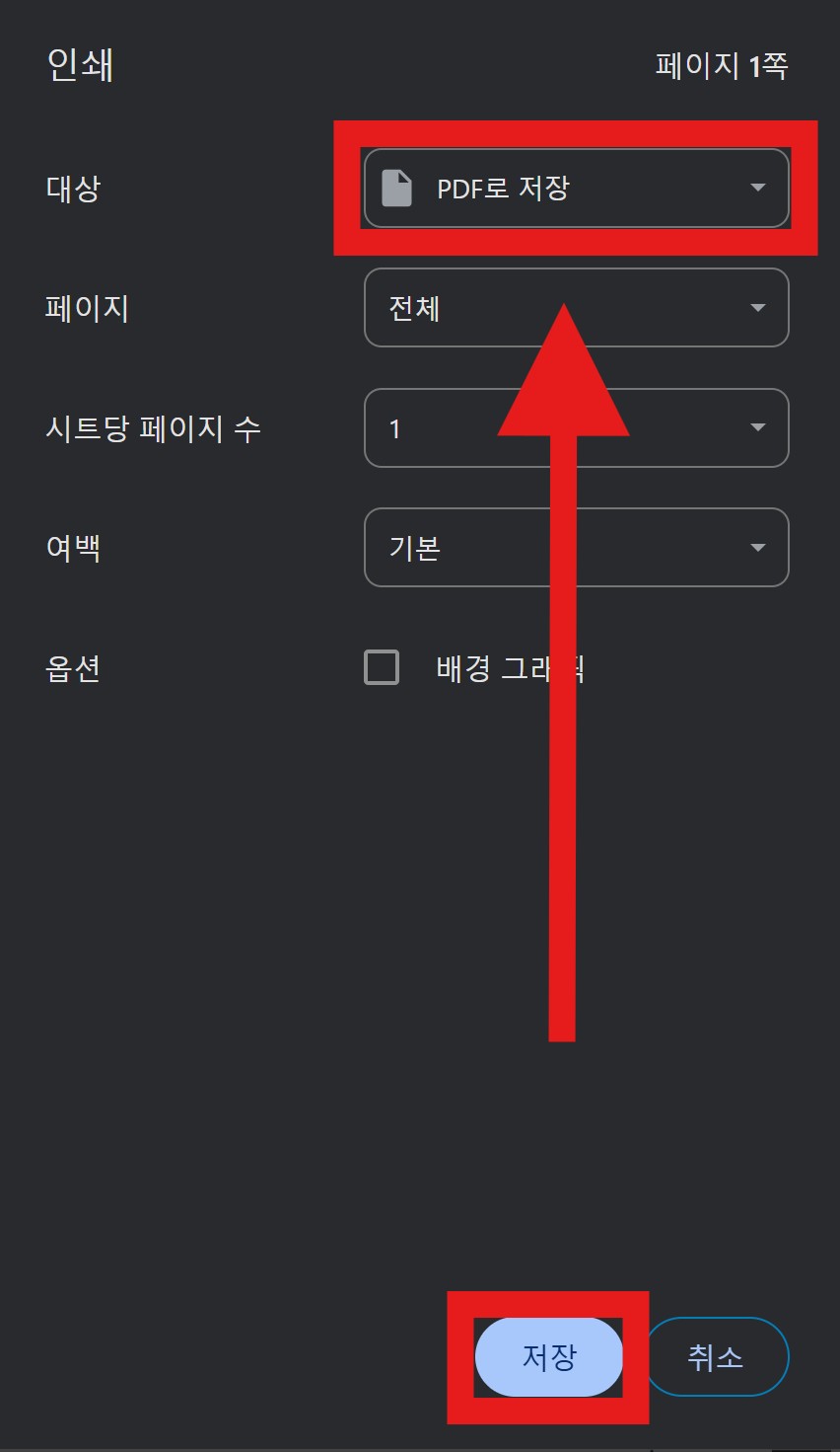 📌 10-2. 인쇄 대상 선택 → ‘PDF로 저장’