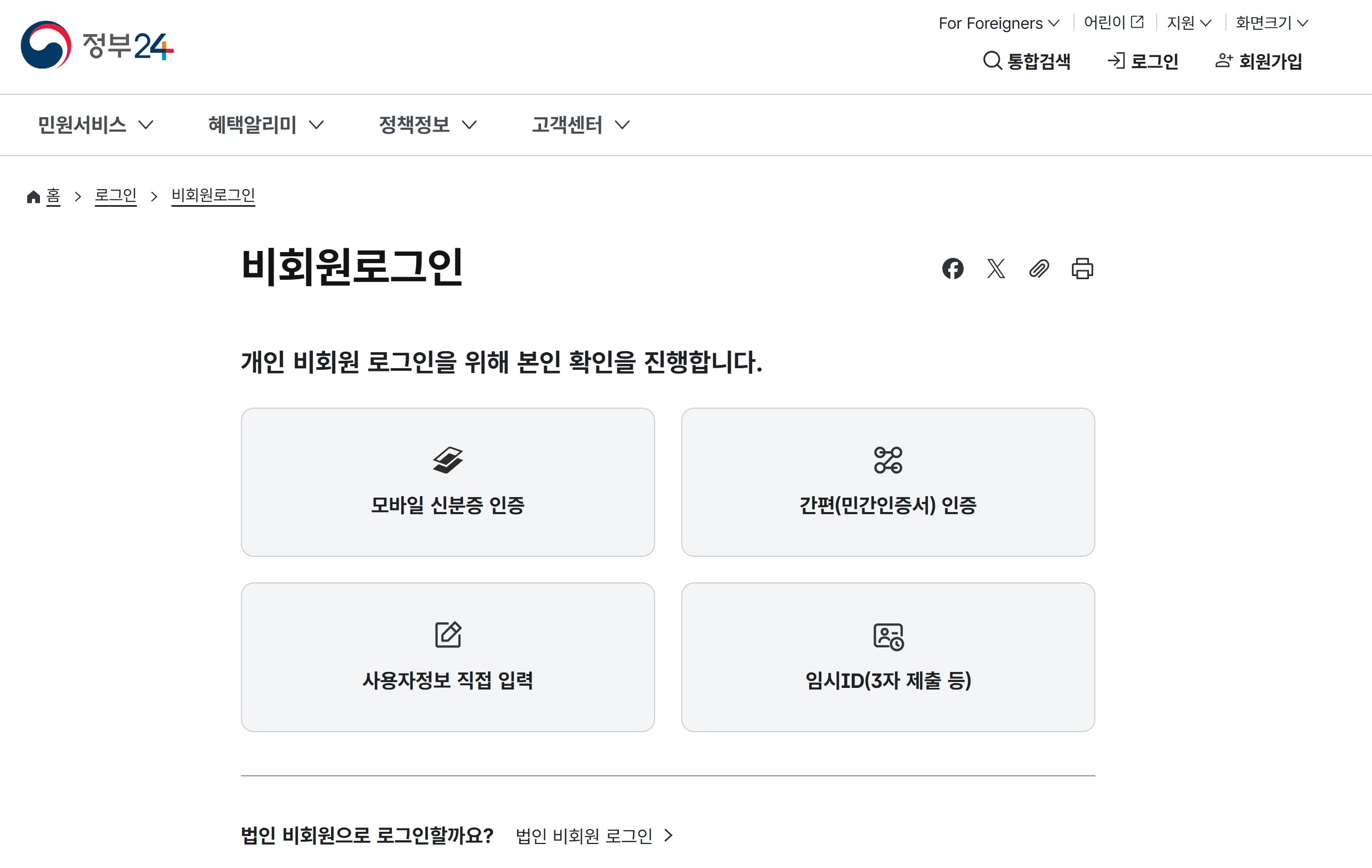 비회원 로그인 후에도 민간인증서를 통한 본인인증이 가능하기 때문에